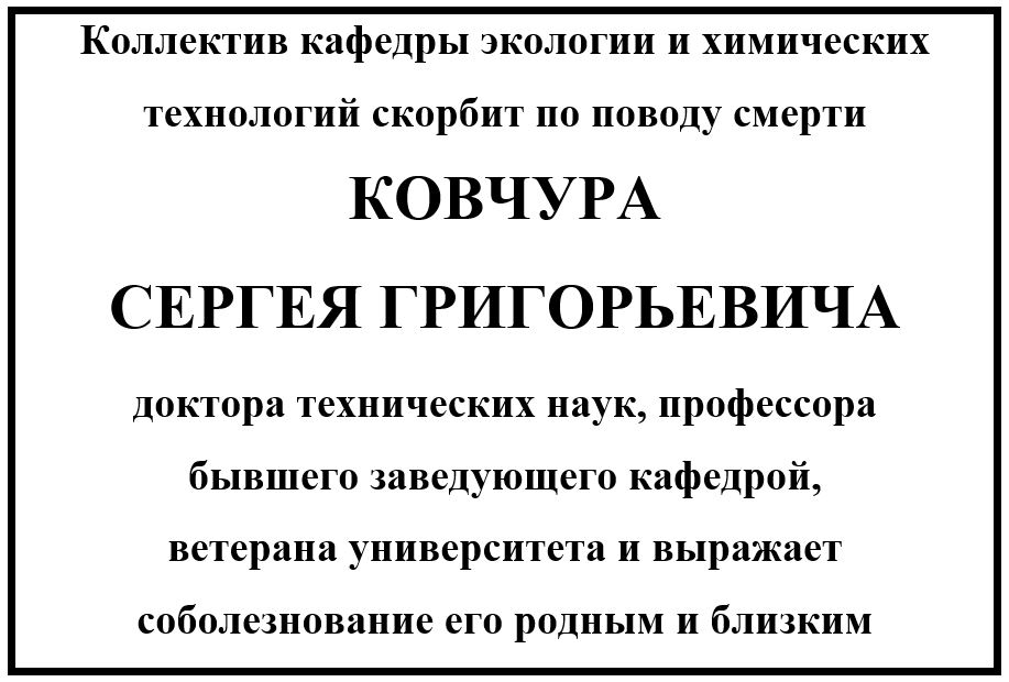 Коллектив кафедры скорбит по поводу смерти Ковчура С.Г.